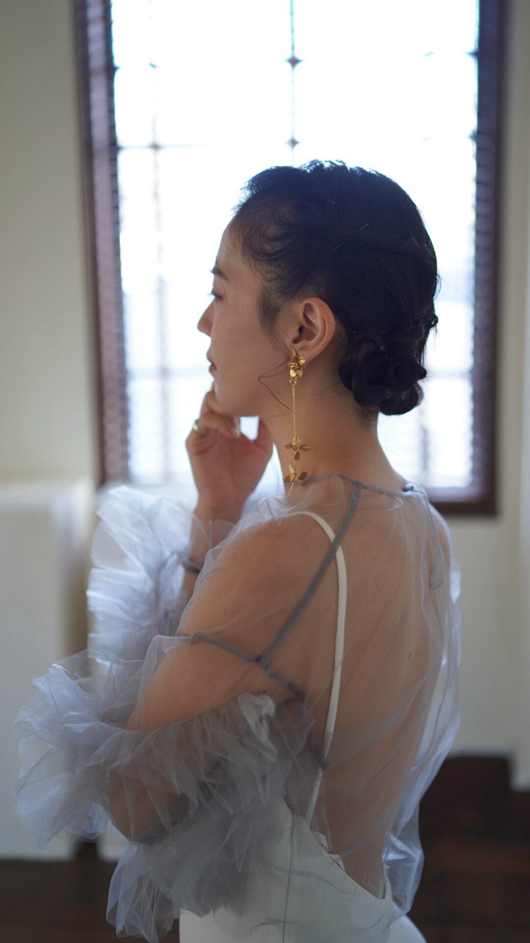軽やかに揺れるデザインが、お顔周りに優雅な輝きを添え、歩くたびに繊細なニュアンスを生み出します。