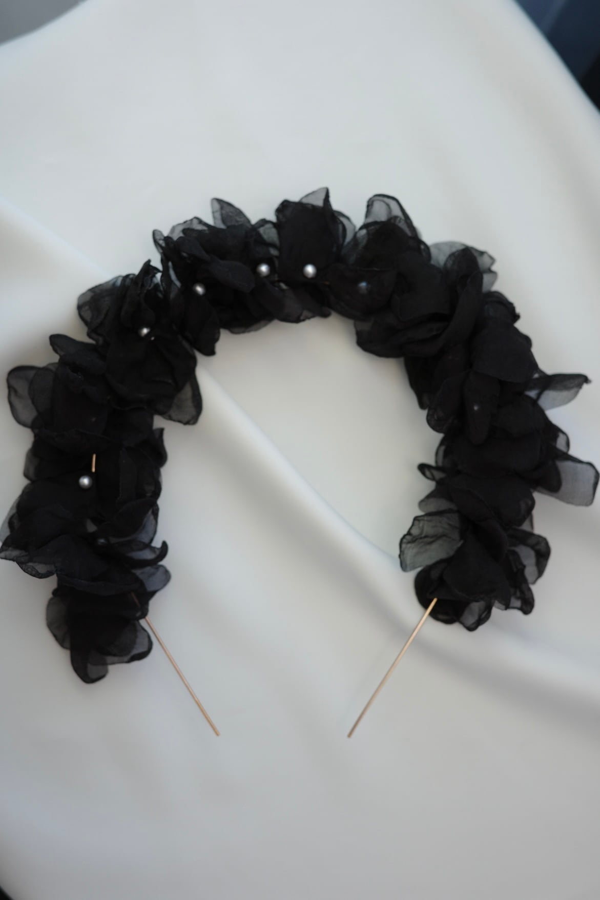 【limited pieces】frill BLACK – airy chiffon headpiece