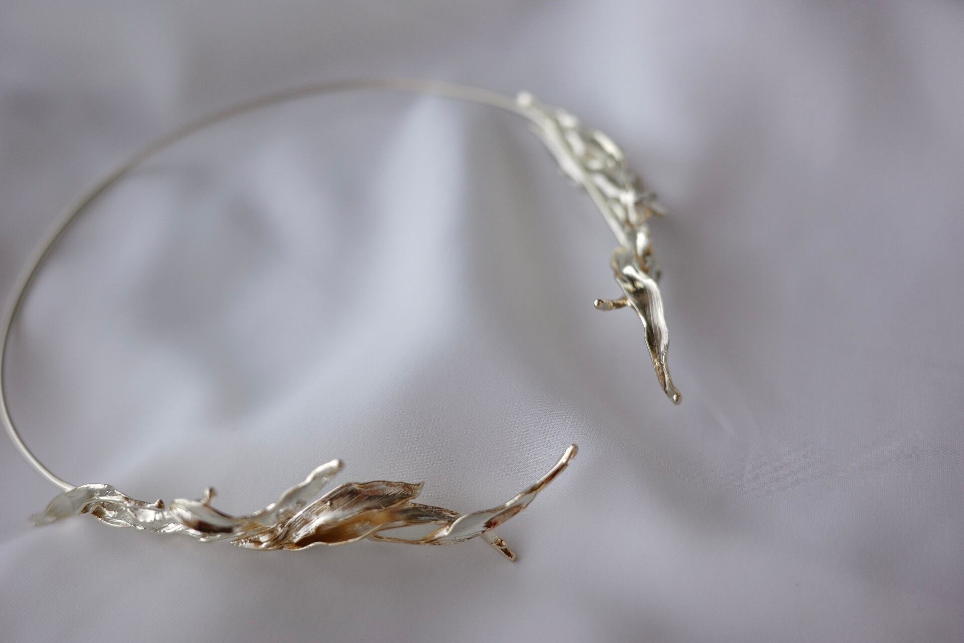 本物の葉を鋳造し、繊細に成形した特別なクラウン。自然の美しさをそのまま閉じ込めた葉のディテールは、一点一点職人の手作業で仕上げられ、それぞれ異なる表情を持つ唯一無二のアクセサリーです。