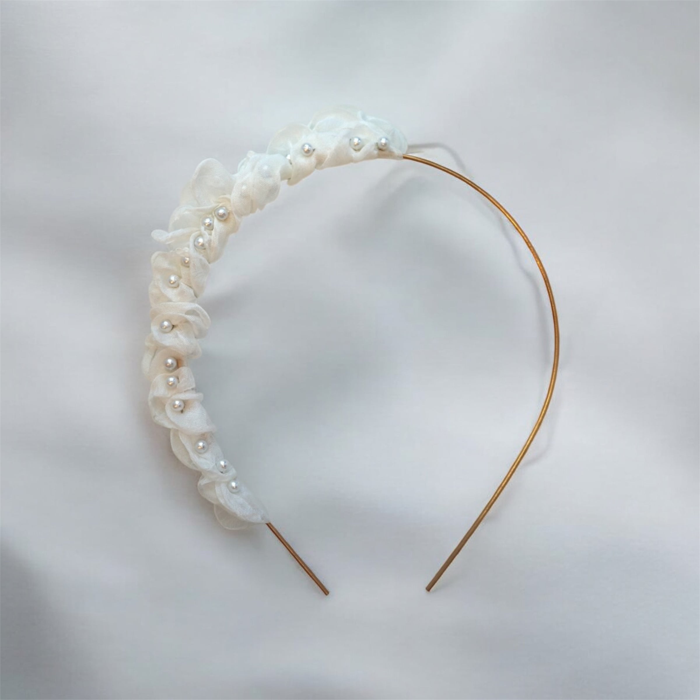 【limited pieces 】 Snow Veil Bloom – chiffon & pearl headpiece