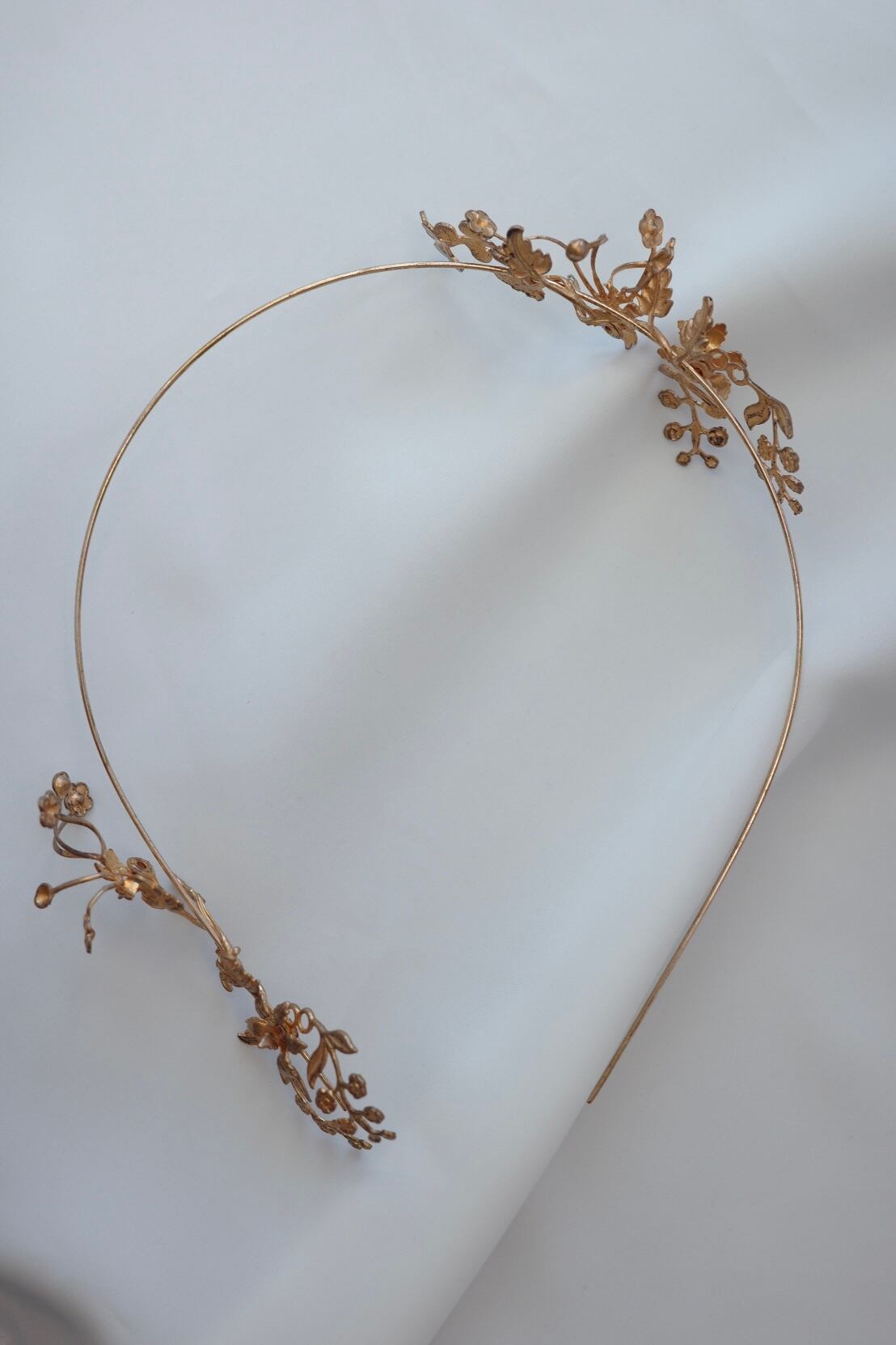シニヨンや編みおろしだけでなく、ゆるくまとめたアップにも寄り添い、花嫁様の横顔をそっと彩るデザインです。